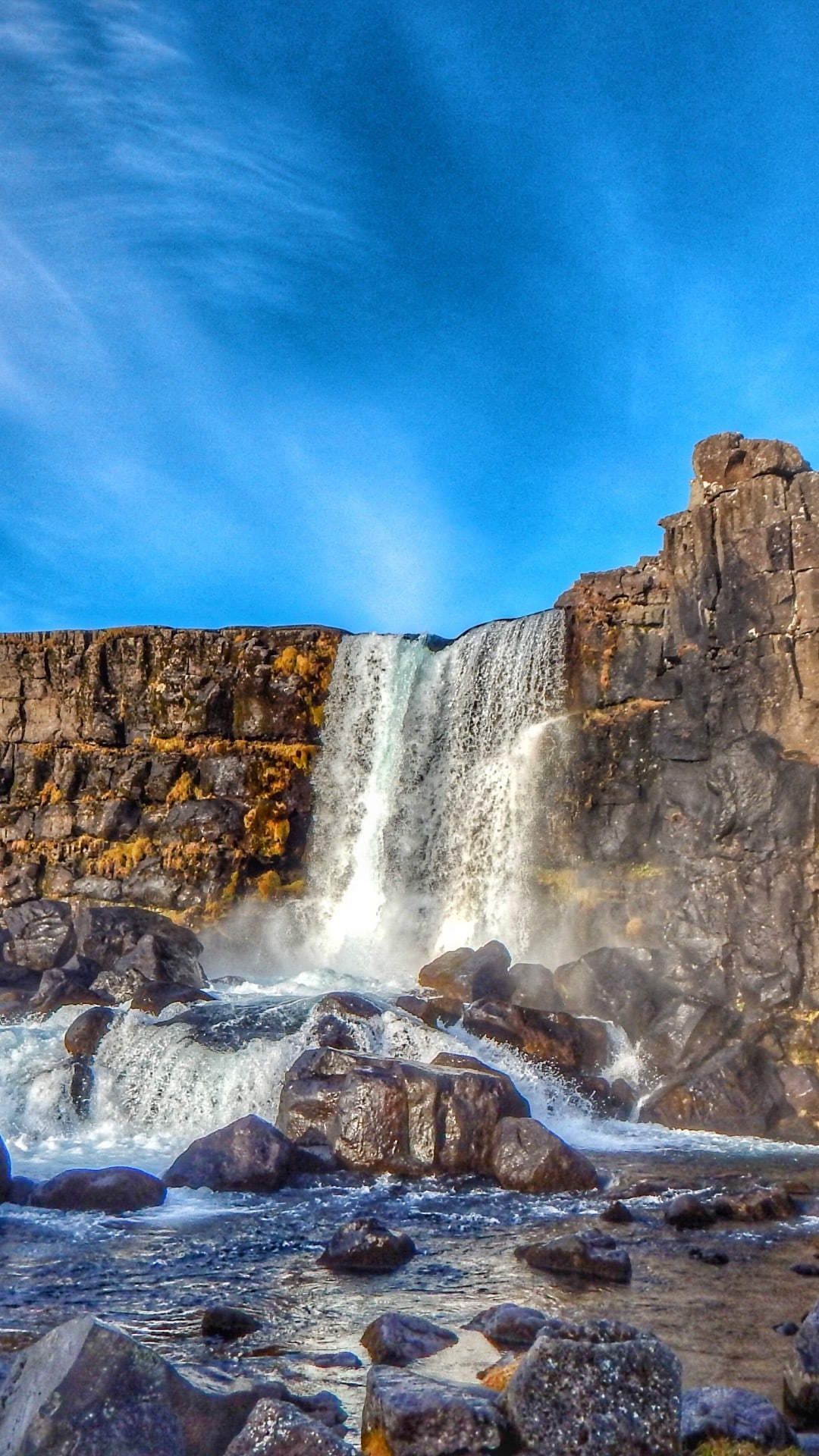 Next, head east through the town of Mosfellsbær to historic Þingvellir National Park, where the first parliament, Alþingi, was founded in 930 AD. This location was declared a UNESCO World Heritage Site and is protected for it´s historical importance and geological wonders. Do not forget to stand on the Euro-American tectonic plates and stand on the rift that divides the continents.