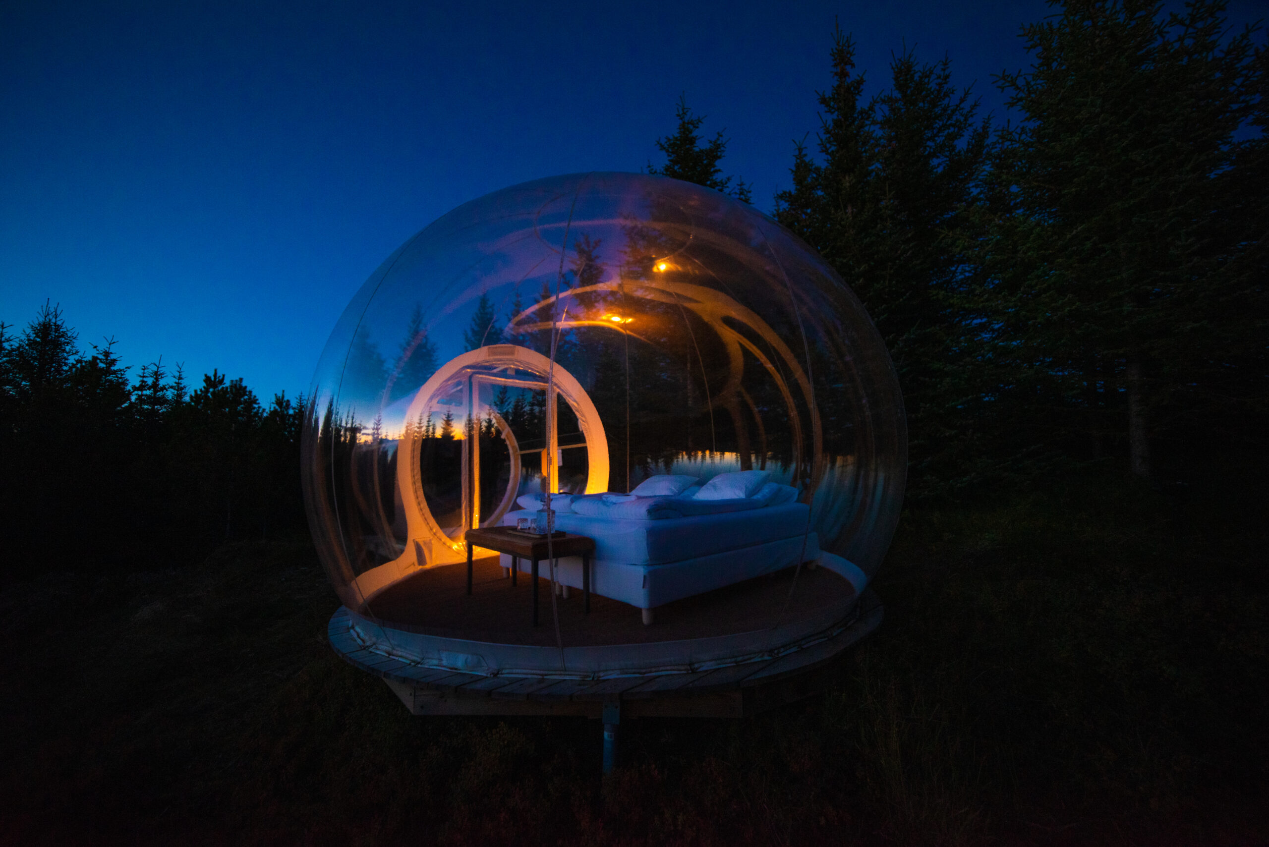 As night falls, you’ll settle into your private bubble and you will do your second day in the bubble hotel at Ölvisholt.