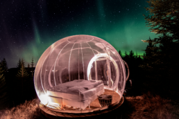 Staying in a dark spot like the Bubble Hotel is the perfect location for seeing the northern lights in Iceland.