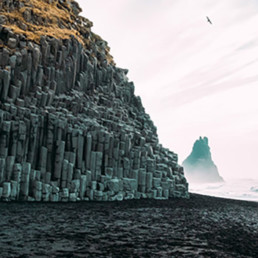 Moving away from the waterfalls, the tour will make it’s way further down the coast to Reynisfjara Black Sand Beach located in the small coastal town, Vik. Known for it’s black colored sand and ginormous basalt stacks, you are sure to get an amazing photo here.