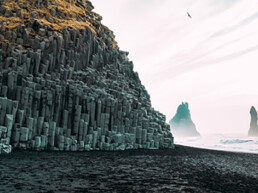Moving away from the waterfalls, the tour will make it’s way further down the coast to Reynisfjara Black Sand Beach located in the small coastal town, Vik. Known for it’s black colored sand and ginormous basalt stacks, you are sure to get an amazing photo here.