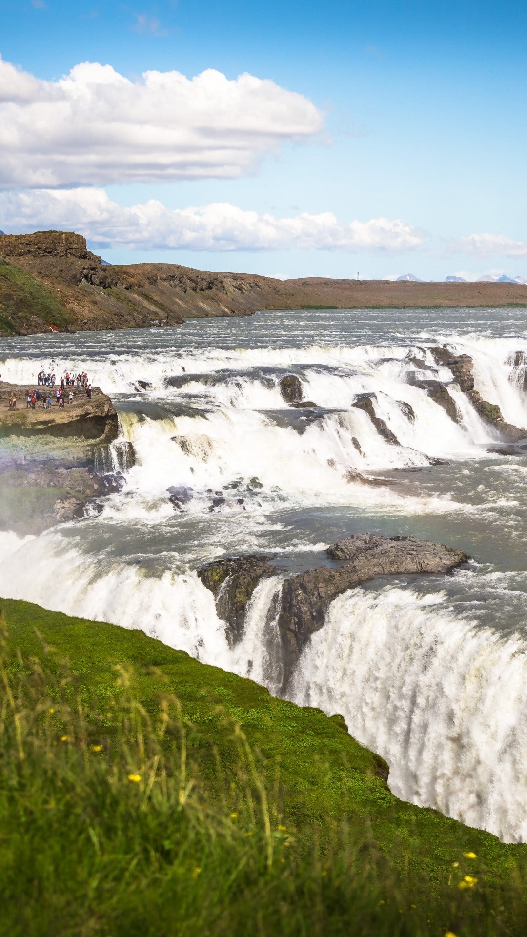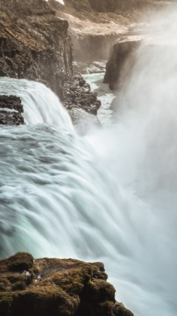 Our next recommend stop is Gullfoss waterfall, one of the most popular tourist attractions in Iceland. It runs down the river Hvítá into beautiful curved three step “staircase”! It is a very powerful experience to walk close to the waterfall on the west side as on average we have 140 cubic meters per second (80 in winter) falling down the staircases. When you arrive at Gullfoss parking area, the edge can’t be seen, so it appears as the earth is simply absorbing the waterfall.